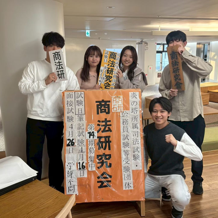 商法研究会は、法曹第一主義に疑問を抱いた故高窪利一氏によって、1951年に設立された学研連等研究室です。法曹だけではない進路を追求する姿勢は脈絡と受け継がれ、茗荷谷キャンパスの地下二階の研究室では、様々な進路を目指す室員が自然と集まり互いに切磋琢磨しあっています。